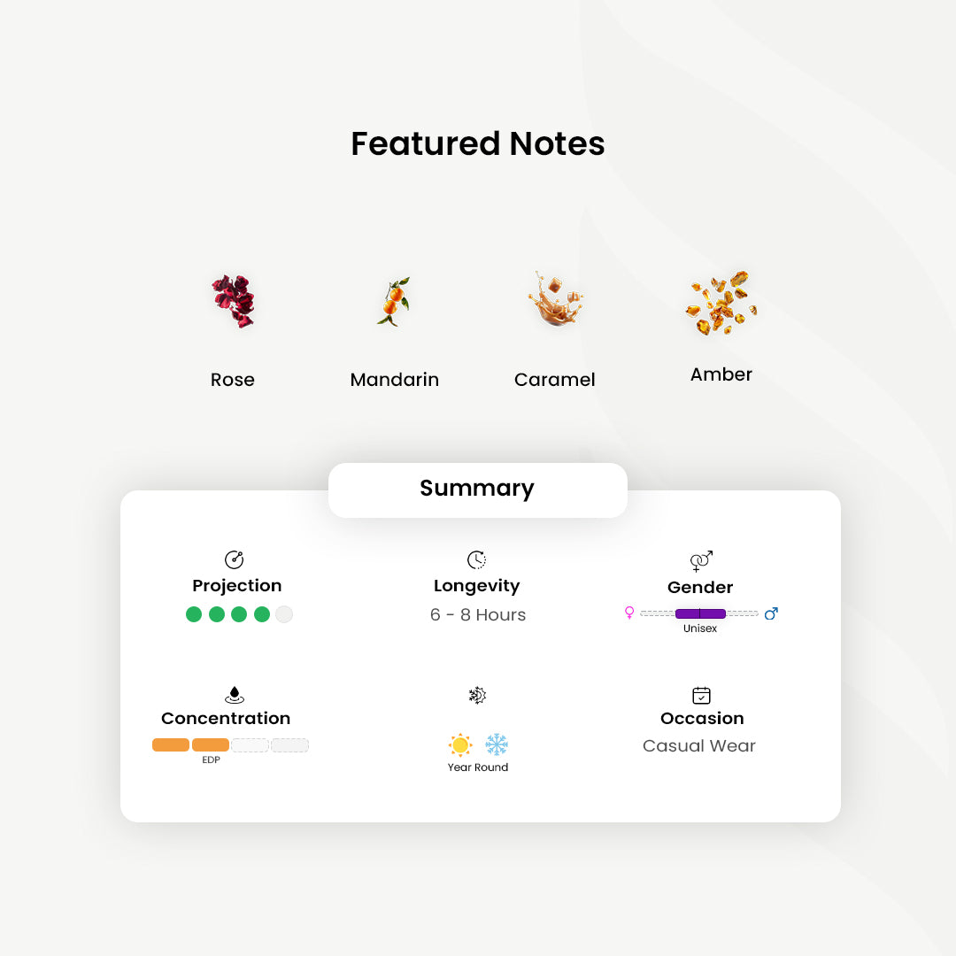 The heart unveils a golden thread of caramel — smooth, rich, and seductive — adding a delectable depth that melts into the skin. As it settles, earthy Evernyl and sensual amber form a warm and lasting foundation, evoking the luxurious embrace of velvets and incense-laced palaces.