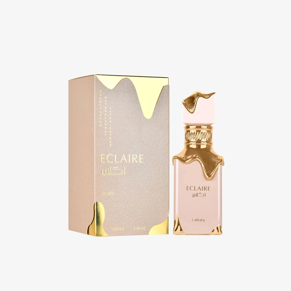 Éclaire by Lattafa is a decadent, luminous fragrance that feels like dessert for the soul. It opens with an irresistible trio of warm caramel, creamy milk, and delicate sugar, instantly enveloping you in a cloud of sweet indulgence.