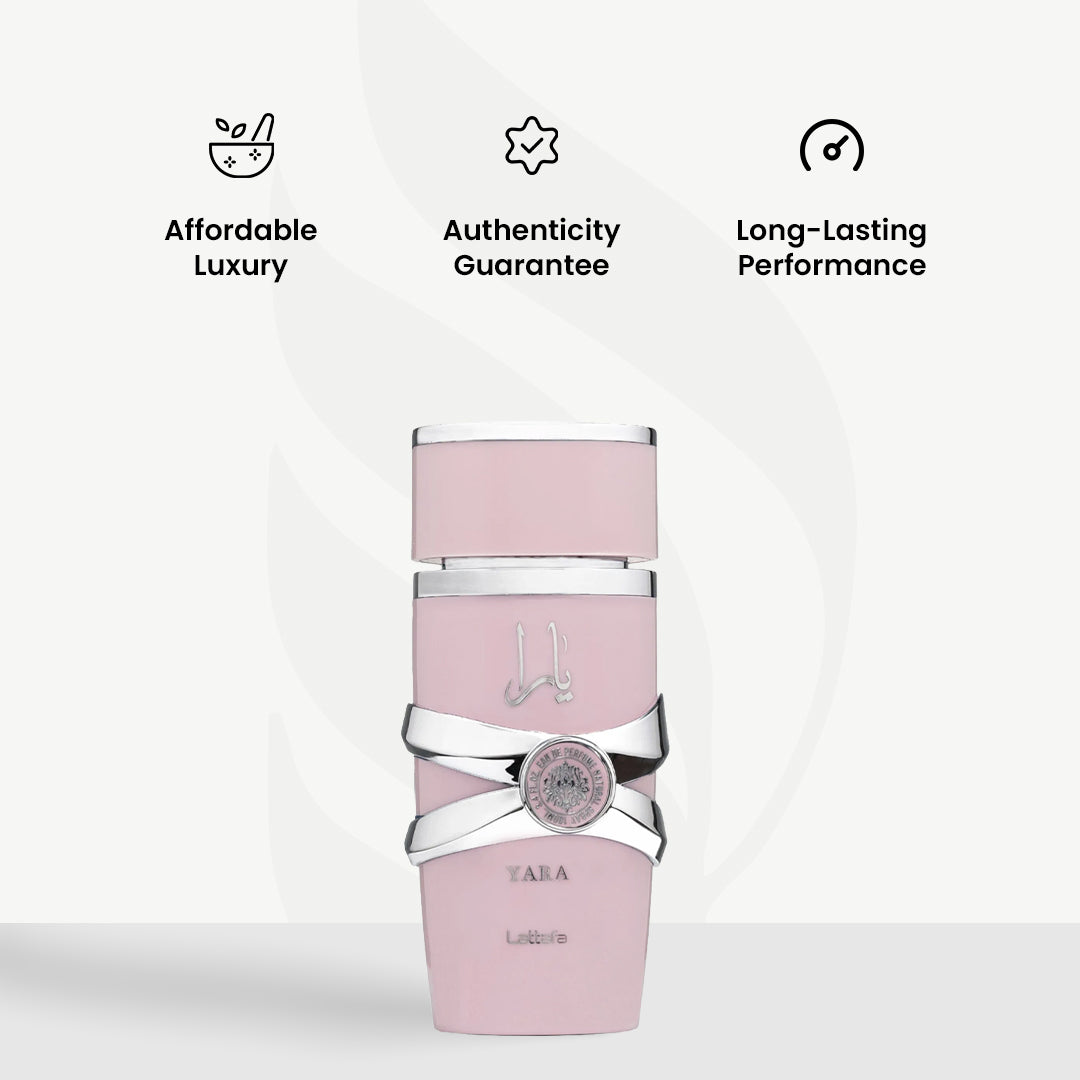 The dry-down is where Yara truly comforts. A soft base of warm vanilla, creamy sandalwood, and delicate musk wraps the skin like a second-skin scent, leaving behind a signature that’s both cozy and elegant.